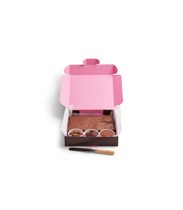 Frost our classic brownie base with indulgent caramel and decadent chocolate frosting The Hummingbird Bakery way. This box contains 1 x brownie slab, 1 x pot of caramel, 1 x pot of chocolate frosting, 1 x pot of chocolate malt balls and 1 x palette knife - everything you'll need to decorate like a pro!