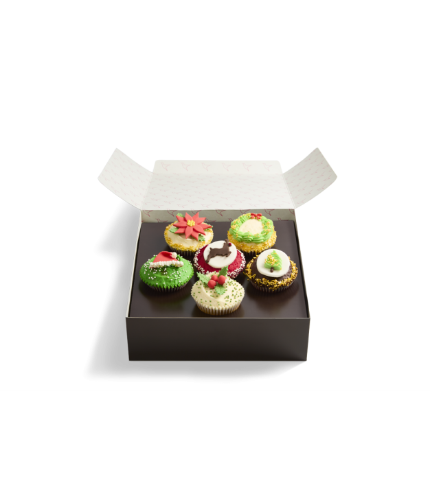 Just enough for Santa and his elves, our Christmas Cupcake box is a festive selection of our favourite American cupcake flavours.