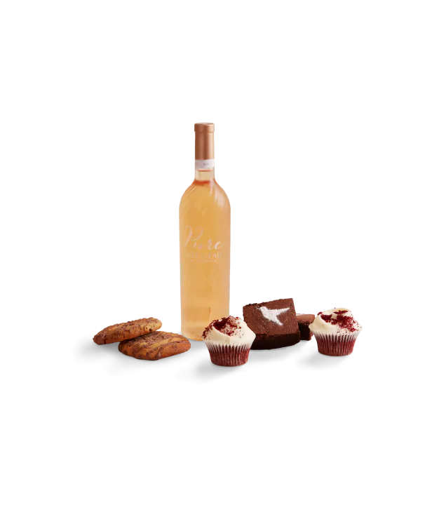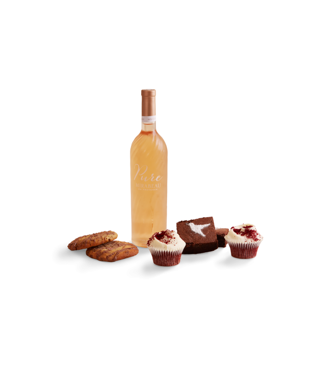 Whether you’re planning a picnic in the park, a soirée under the stars, or simply indulging in a moment of blissful solitude, our Mirabeau Hampers are designed to elevate every occasion. This hamper incudes a bottle of Mirabeau Pure Provence Rosé, 2 of our customer's favourite Red Velvet cupcakes, 2 Chocolate Chip Cookies, packed with chocolate chips and drizzled with even more chocolate and 2 Genuine American Brownies - chewy with a rich chocolate taste.