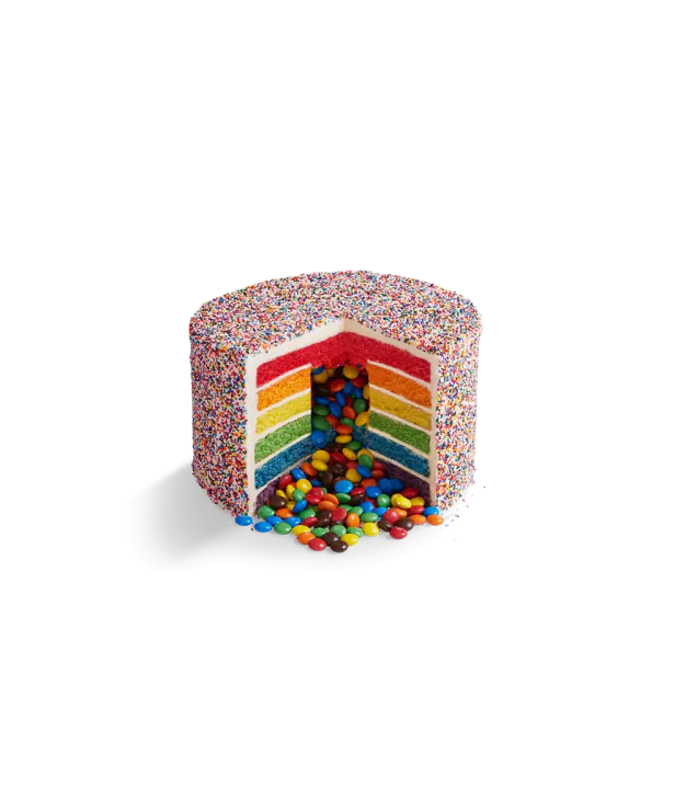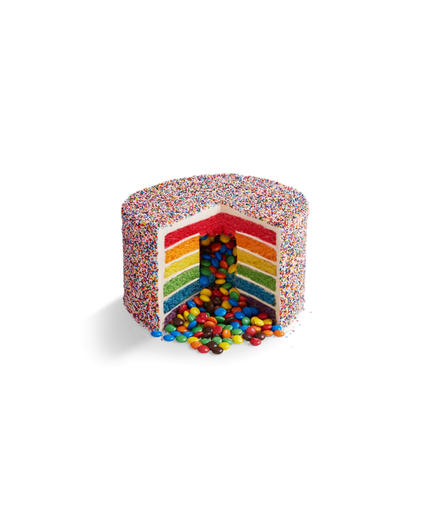 After getting some stick for not making a much-requested Piñata Cake... we finally gave it a whack! Slice into fluffy, freshly baked sponge and release a surprise centre of M&Ms. Wow your guests and get the party going with this colourful candy-filled cake in vanilla Rainbow flavour.