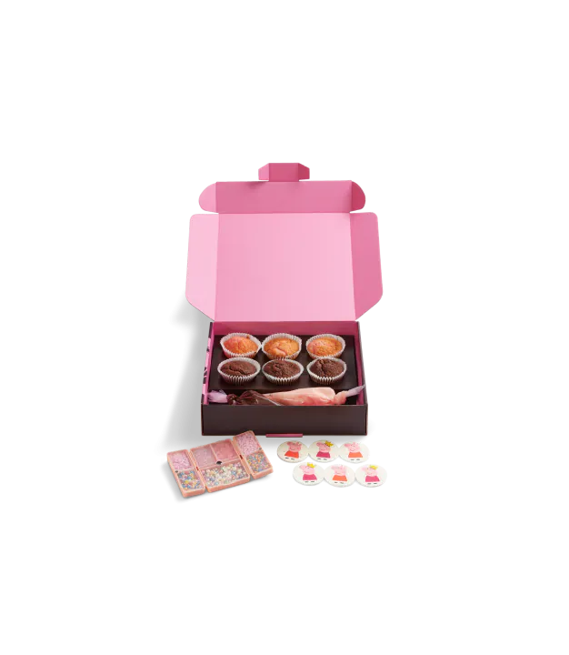 Get ready to get creative with our Peppa Pig Decorating Kit. This Kit is just the ticket for a hands-on, sprinkle-filled Peppa Pig adventure. Get ready to frost 3 fluffy pink vanilla cupcakes and 3 decadent chocolate cupcakes with an assortment of pink vanilla or chocolate frosting, Peppa logos and a jam packed reusable sprinkle case.
