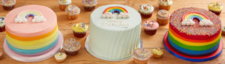 Searching for a rainbow cake for kids’ birthday parties? The wow factor is built in. Add candles, a personalised message or even opt for one of our themed birthday cakes to create something truly magical.
