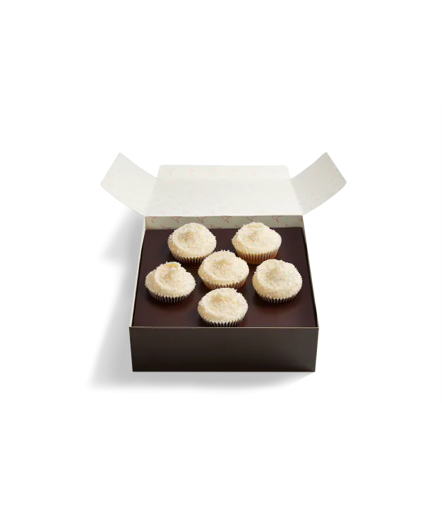 This classic cupcake box is perfect for any occasion. Containing 2 Vanilla, 2 Chocolate and 2 Red Velvet cupcakes with our signature frosting swirl and white pearlised nonpareil sprinkles.
