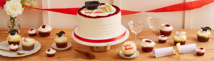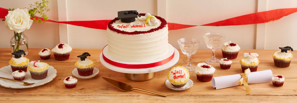 We know how important it is for your cake to taste as good as it looks. That’s why all our graduation cakes are made fresh to order, using only the finest ingredients. Whether you're after a stylish, elegant red velvet graduation cake or something more playful and fun, our bakers can create the perfect centrepiece.