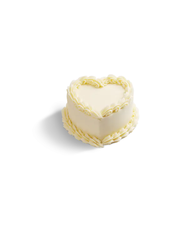 Celebrate your love with our 6" Snowy White Heart Cake, our classic two layered heart red velvet with delicately adorned with beautiful cream cheese shelled piping, this elegant cake captures the essence of romance with its soft, pristine white frosting.