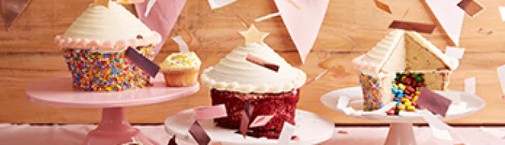Tempted to try a giant cupcake recipe at home? Wondering where to find the best giant cupcake recipe online? Skip the stress of sourcing tins and icing tips – our professional bakers have it covered.