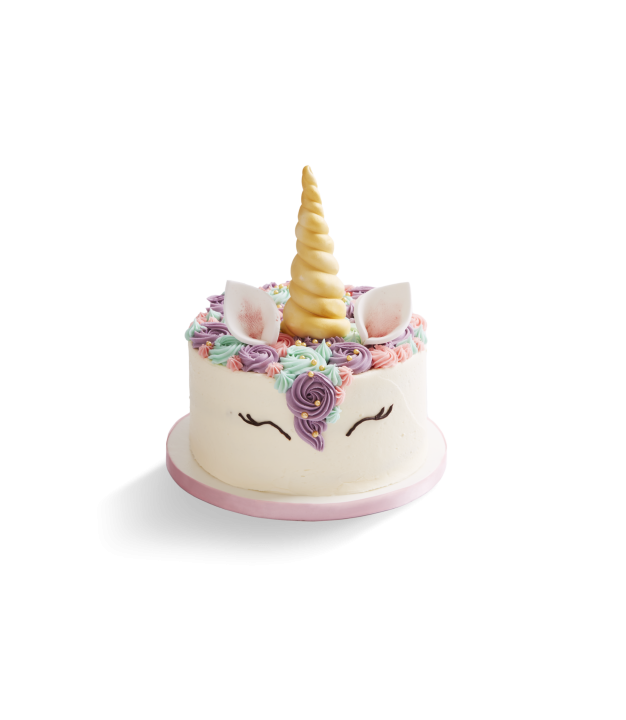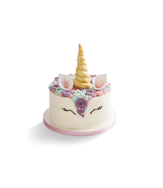 Our enchanting unicorn cake is perfect for those who love magic and fairytales! Our 8" multi-coloured marvel of moist vanilla rainbow sponge layers and lightly whipped vanilla buttercream frosting is perfect for birthdays or any magical celebration!