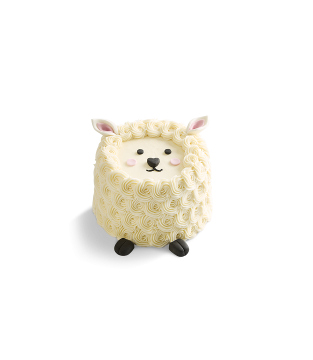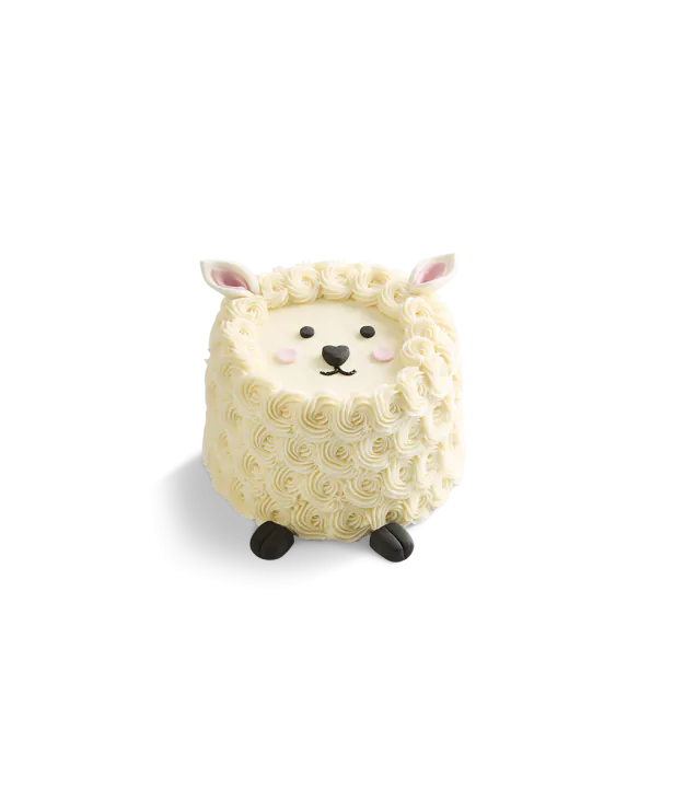 This little lamb cake brings the shear delight of spring with it's 4 layers of fluffy vanilla sponge piped with beautiful 'wool' vanilla rosettes. Its the Fleece de Résistance!