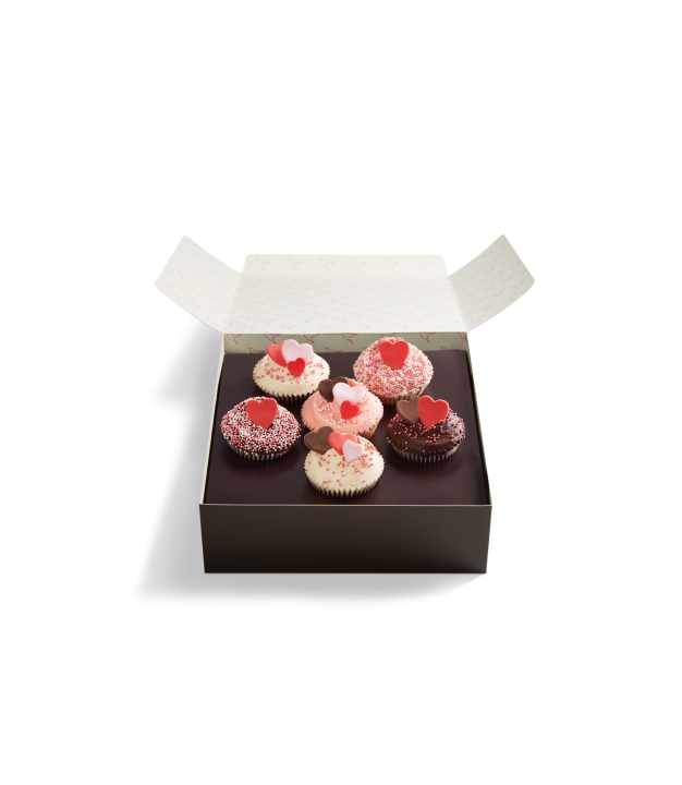 You know what they say, fresh baking conquers all. If you're looking to wow your Valentine with fresh American baking, this cupcake gift box of six darling designs will send your sweetheart wild.