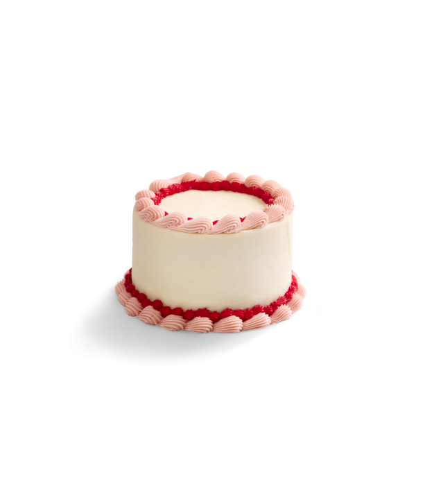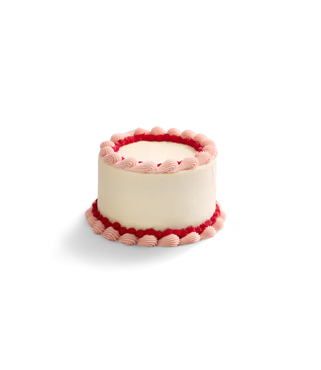 Elegantly adorned in classic shell piping. This three layer 6" vanilla cake with delicate swirls of soft pink and bold vanilla red buttercream trim both the top and base, creating a timeless look that feels both sweet and celebratory.