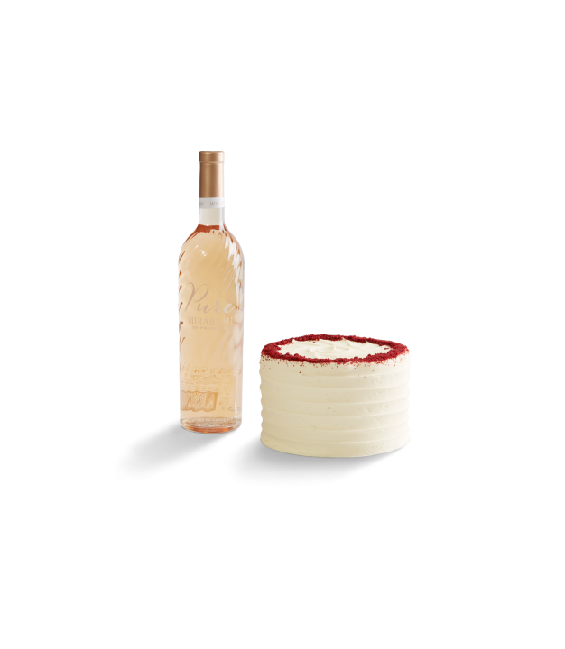 This hamper includes a bottle of Mirabeau Pure Provence Rosé and our customers’ all-time favourite 6" Red Velvet Cake. Deep red vanilla cake with a light taste of chocolate, topped with cream cheese frosting. This decadent layer cake is sure to please.